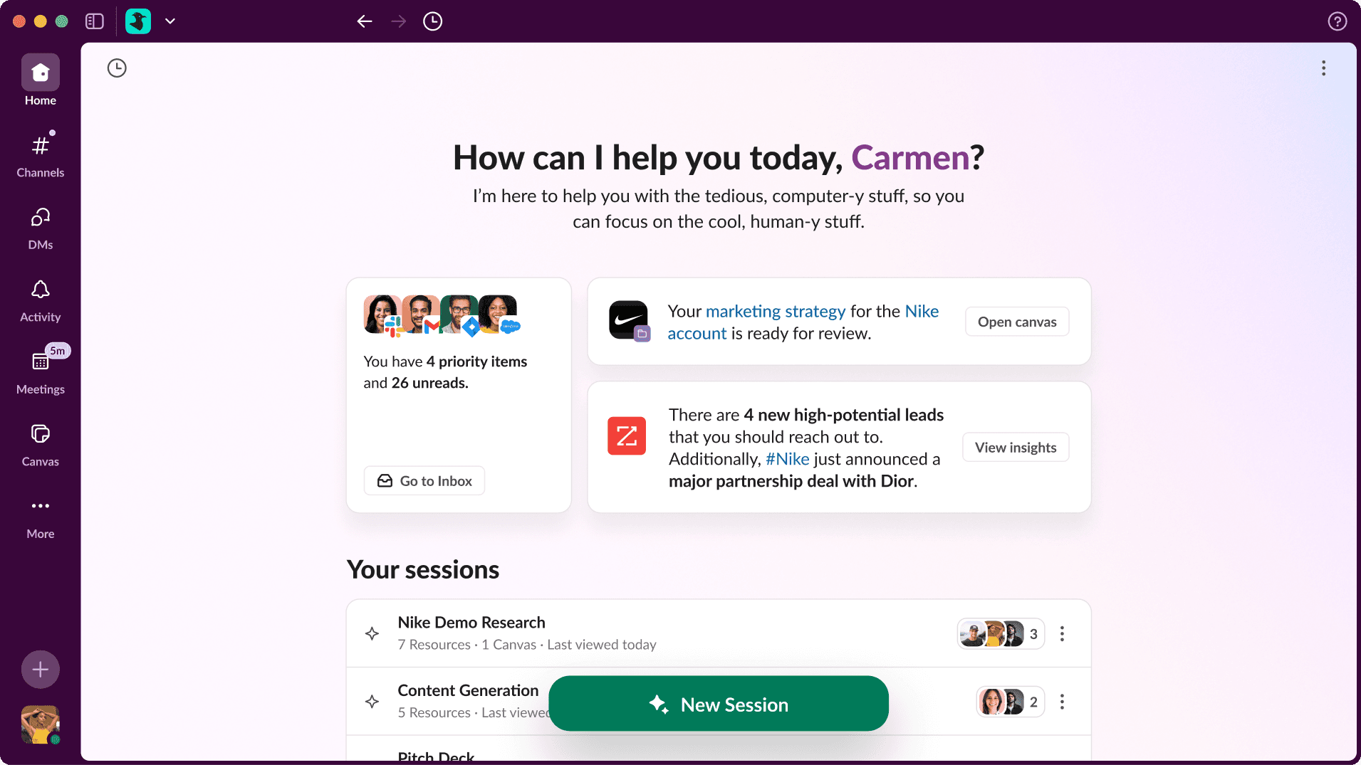 AI capabilities extend beyond the Slack window—able to see what users are working on, suggest improvements, and enable richer collaboration without manual sharing.